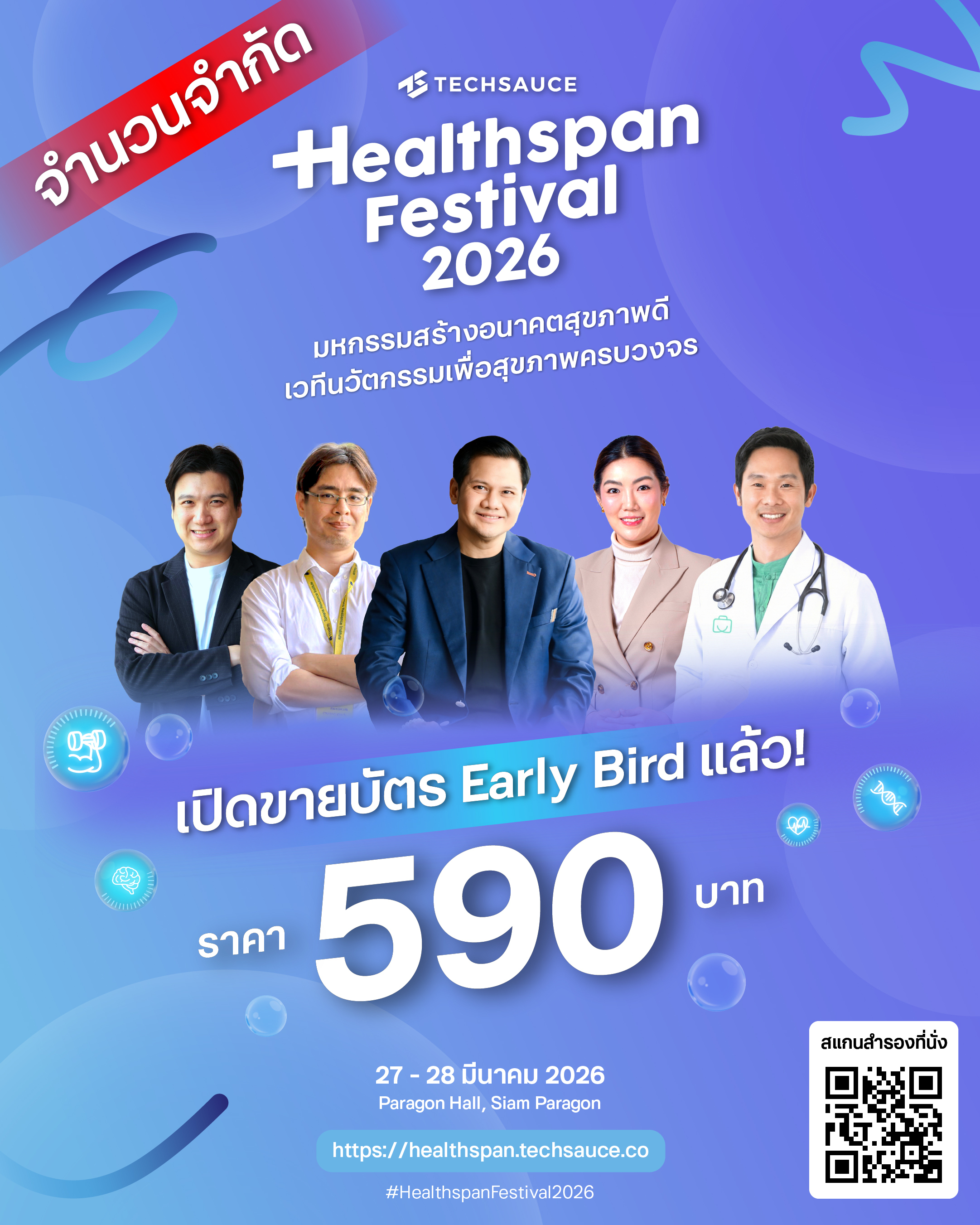 มาร่วมค้นพบ “Healthspan” ช่วงเวลาแห่งความแข็งแรงสมบูรณ์ทั้งกายและใจ ออกแบบสุขภาพที่ดีที่สุด ในแบบของคุณเอง ที่ Techsauce Healthspan Festival 2026 งานนี้ตอบโจทย์ใคร?